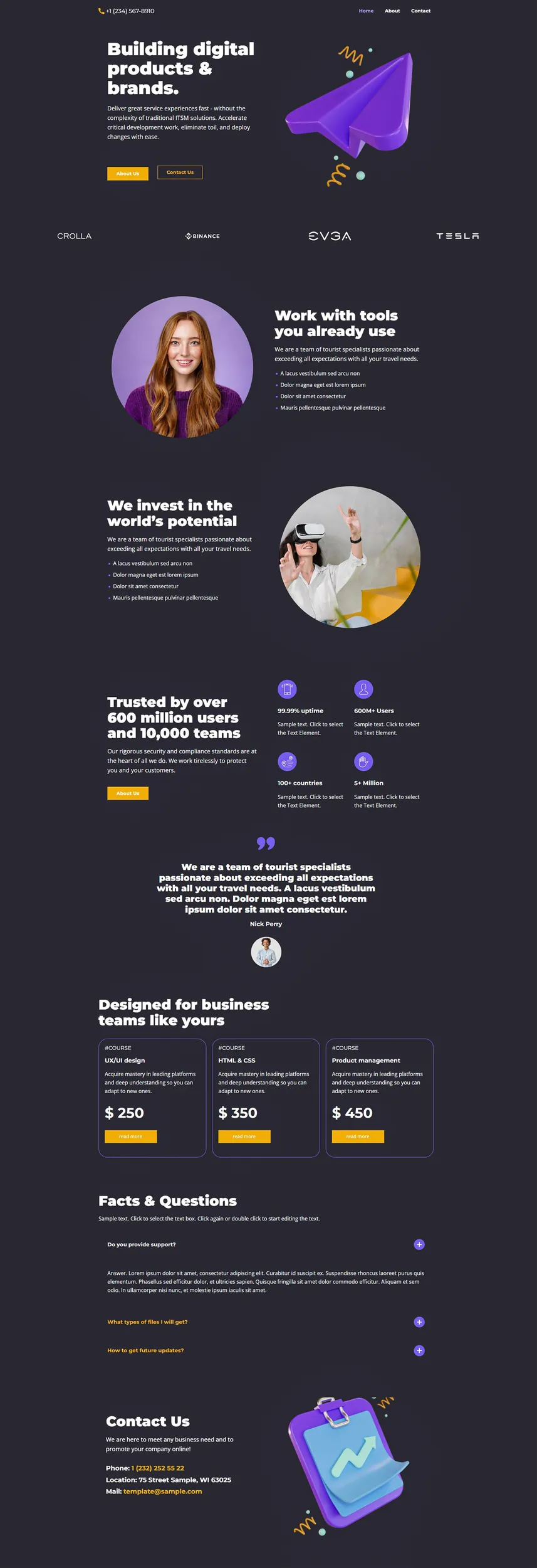 Una landing page a una sola schermata con blocchi studiati per promuovere prodotti o servizi in modo efficace e professionale.